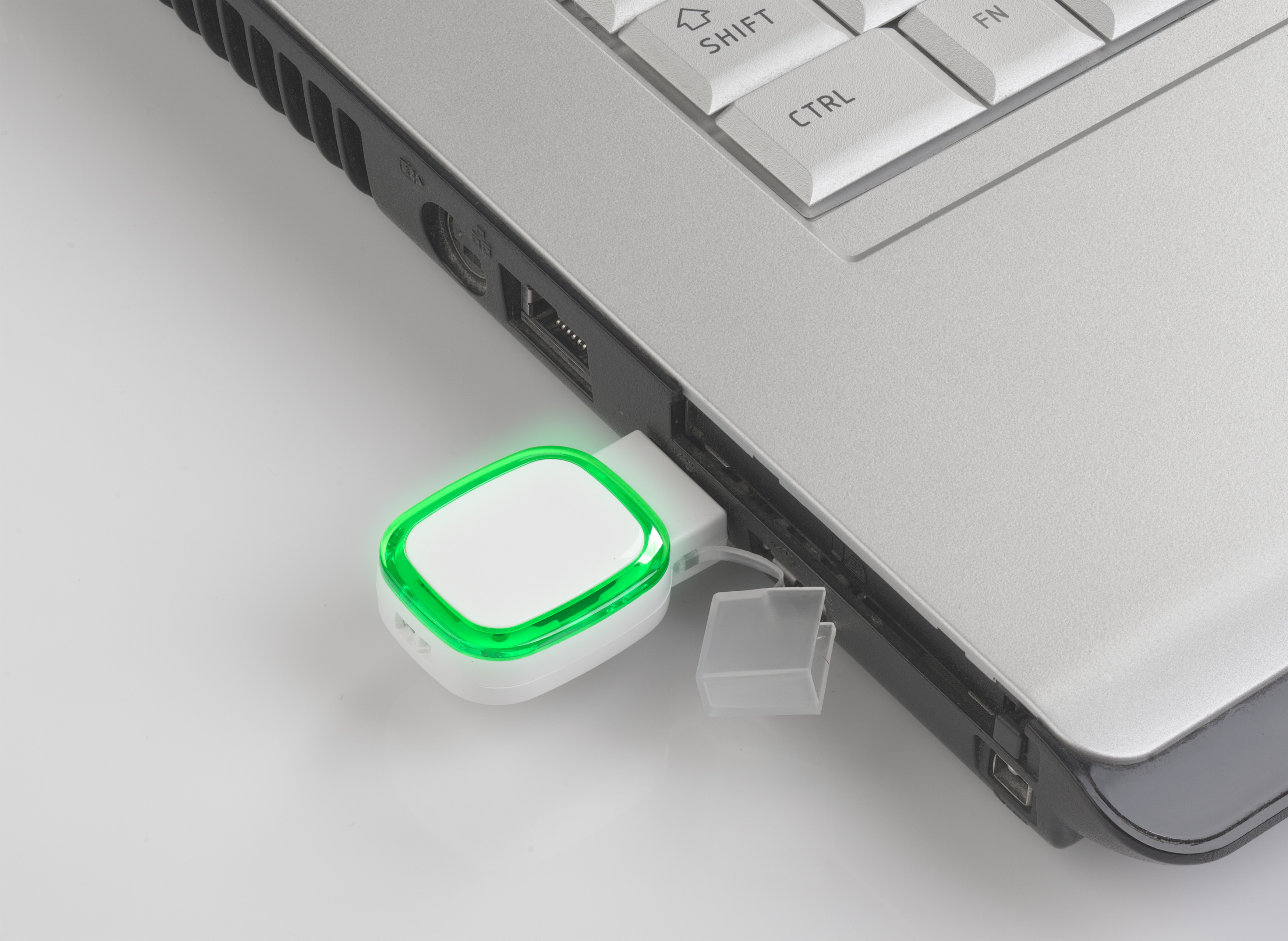 Флеш-карта 16 Гб с подсветкой логотипа, белый с зеленым
