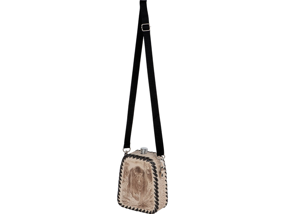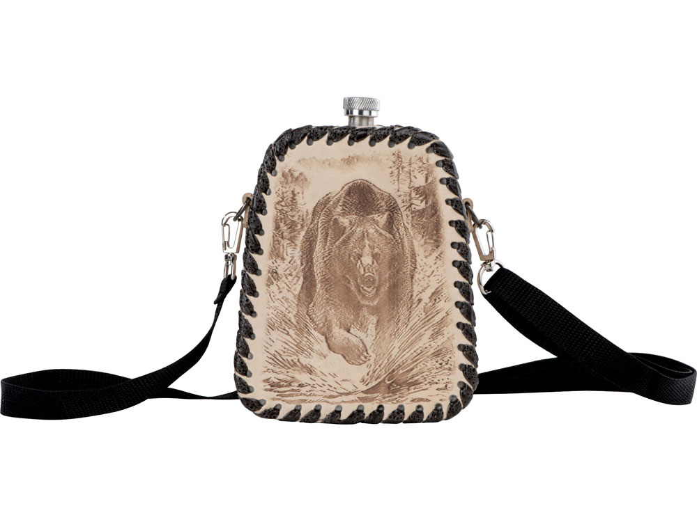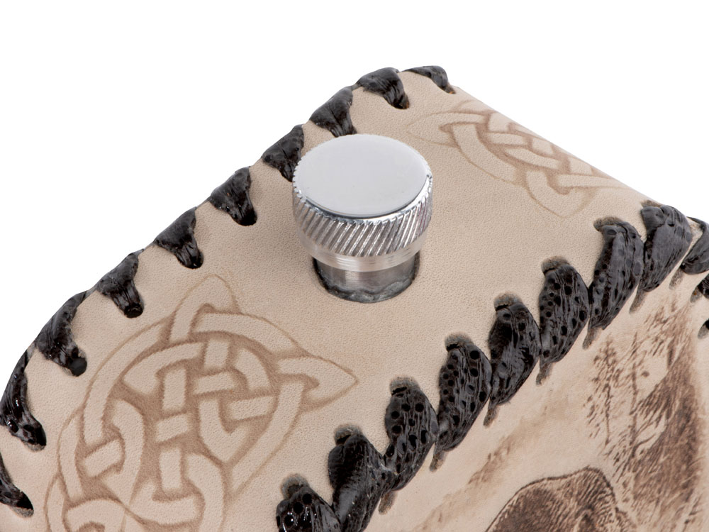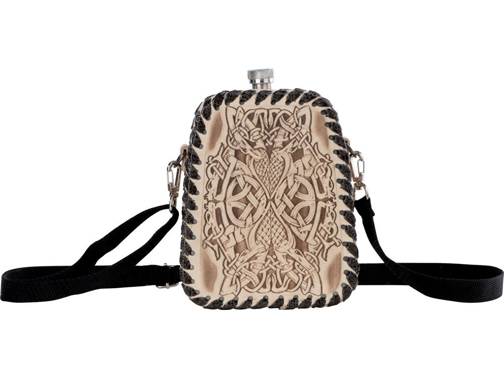 Фляга 1л в оплетке из натуральной кожи с нанесением рисунка методом художественного выжигания.