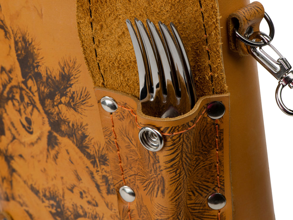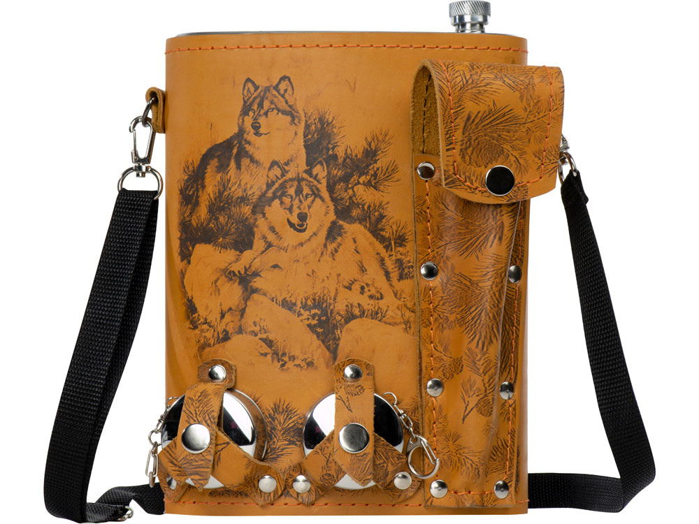 Набор Подарочный: фляга 511/2 (рыжая кожа), 2л+2 стаканчика+2 вилки