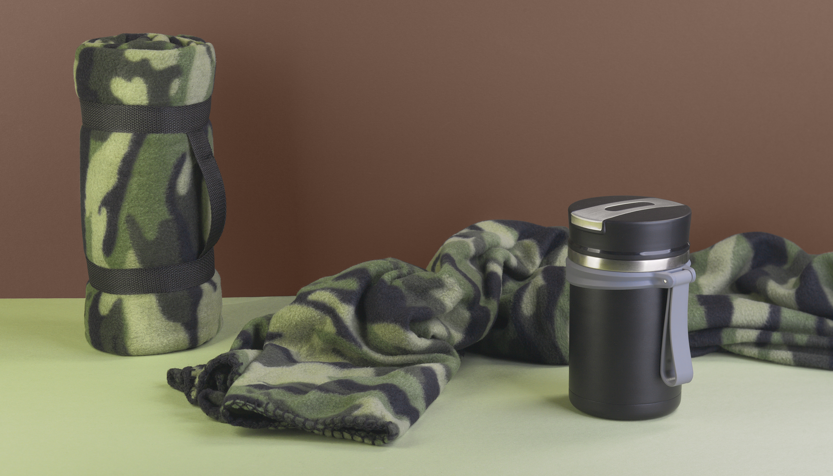 Плед "Камуфляж"- необходимая вещь для любителей активного отдыха или просто для тех, кто предпочитает чувствовать себя комфртно и уютно на природе, даче, пикнике. Плед не займет много места в дорожной сумке или рюкзаке, так как компактно складывается с помощью ручки-фиксатора. Параметры пледа дают возможность нанести на плед и ручку-фиксатор логотип.