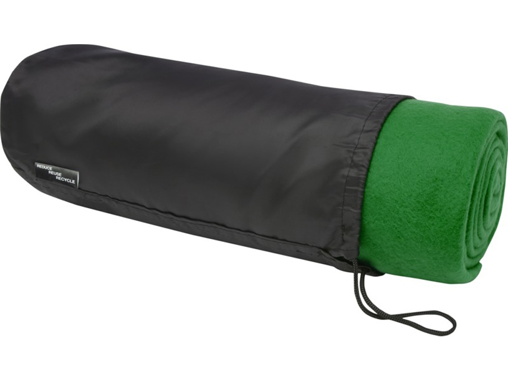 Плед из флиса, вторичного ПЭТ, подходит для использования в помещении и на улице. 100% переработанный полиэстер, 180 g/m2. Поставляется с сумкой для переноски из вторичного ПЭТ 190T с застежкой на шнурке. Размер сумки d13 х 34 см. Упаковано в полиэтиленовый пакет из переработанного материала.