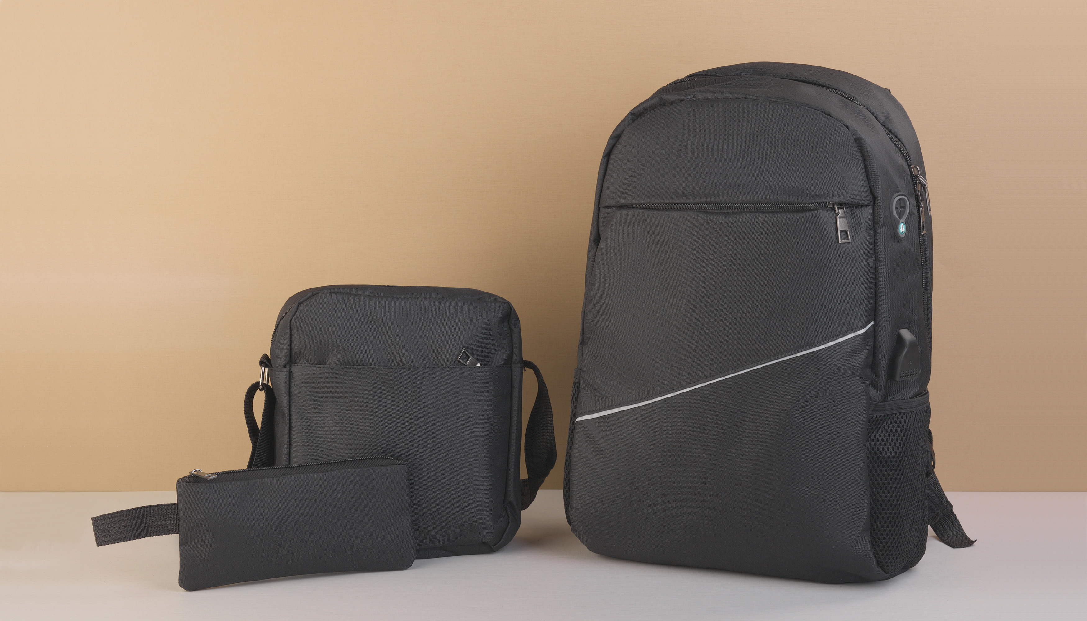 Набор TRIO 3в1: рюкзак, сумка, несессер, черный