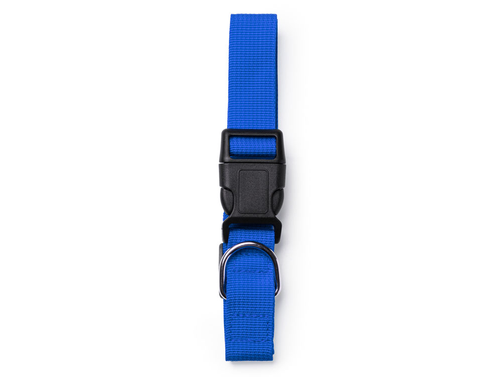 Ошейник для домашних животных из прочного и мягкого полиэстера. Регулируемый ремешок и пряжка с застежкой. Включает металлическое кольцо для прогулочного поводка.