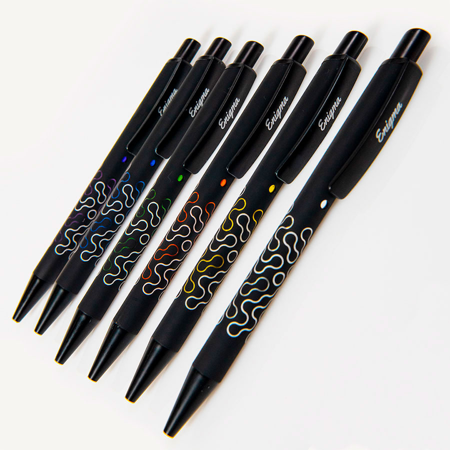 Эта притягательная и загадочная ручка позволяет эффектно представить логотип бренда.Её секрет - цветная подложка под “soft touch” покрытием, которая позволяет сделать зеркальную гравировку. Небольшое окошко под клипом показывает цвет гравировки.Приятная на ощупь бархатистая поверхность корпуса подчеркнута деталями из матового пластика: клипом, носиком и кнопкой.• Металлический корпус и клип. • Нажимной механизм подачи стержня.• Пулевидный пишущий узел 1.0 мм.• Длина линии письма 1000 - 1200 м.• Цвет чернил синий.• Сменный стержень Parker type.• Виды нанесения: лазерная гравировка, тампопечать.