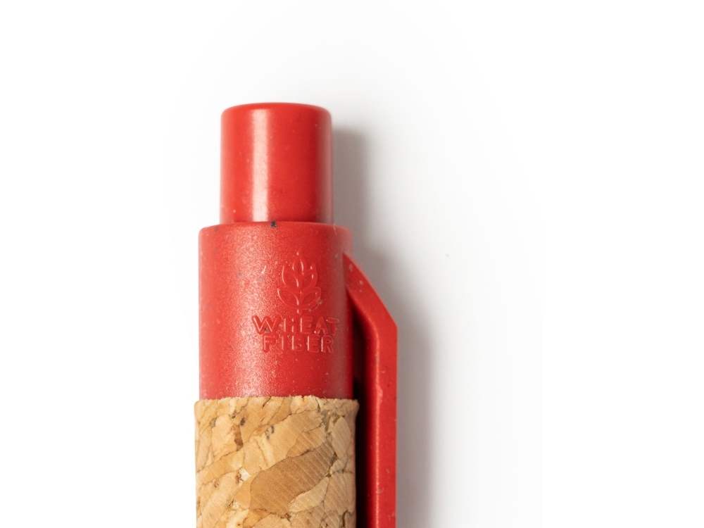 Ручка Eco-line с пробковым корпусом. Наконечник, кнопка и клип из пшеничного волокна. Синие чернила.