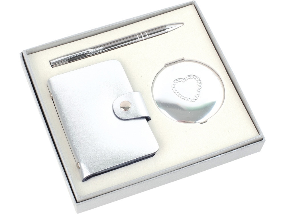 Набор Чувства: шариковая ручка, зеркало, визитница, серебристый (Р)
