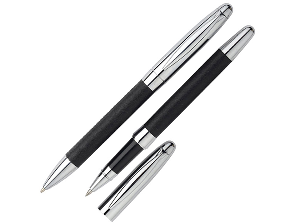 Набор Рейн: ручка шариковая, ручка роллер в футляре черный