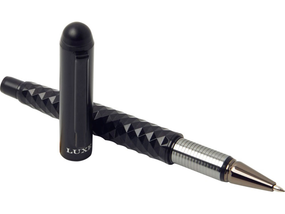 Ручка-роллер с эксклюзивным дизайном сочетает в себе шикарный внешний вид и надежность. Корпус эргономичен для использования. Ручка заправлена черными чернилами и упакована в подарочную коробку LUXE. Подарочный набор можно дополнить стилусом или шариковой ручкой с нажимным механизмом. Алюминий.