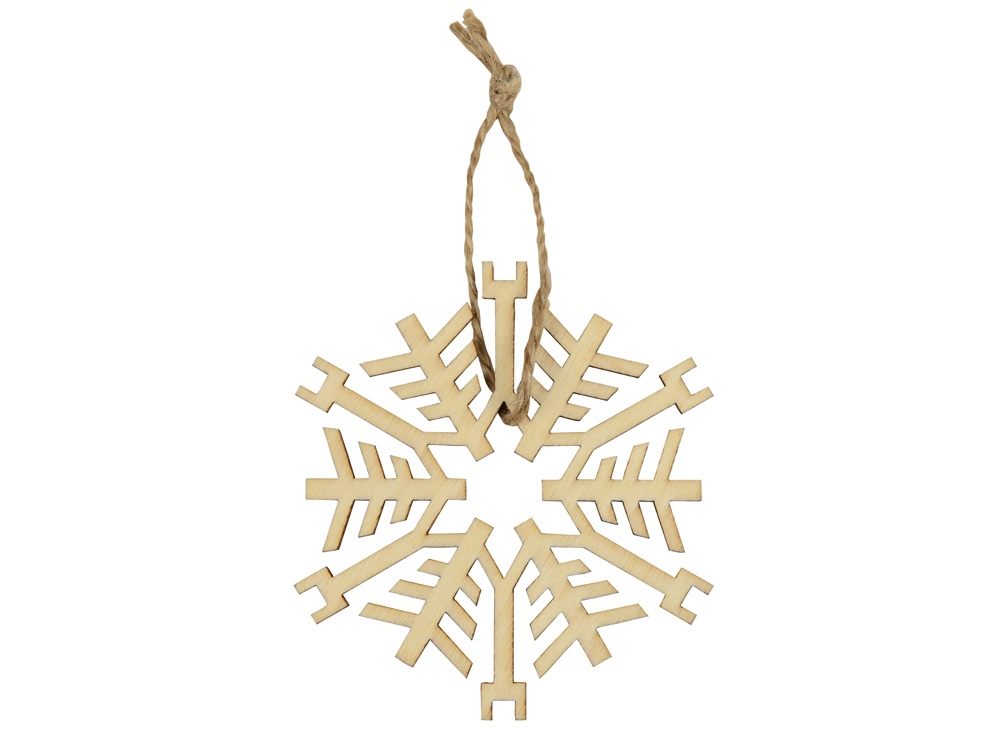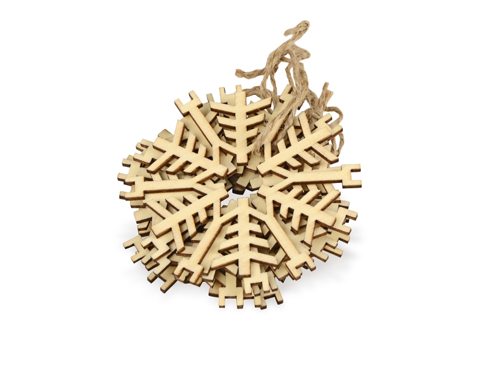 Набор оригинальных деревянных украшений в виде снежинок. Поставляются в крафт коробке с прозрачной крышкой по 6 шт.
