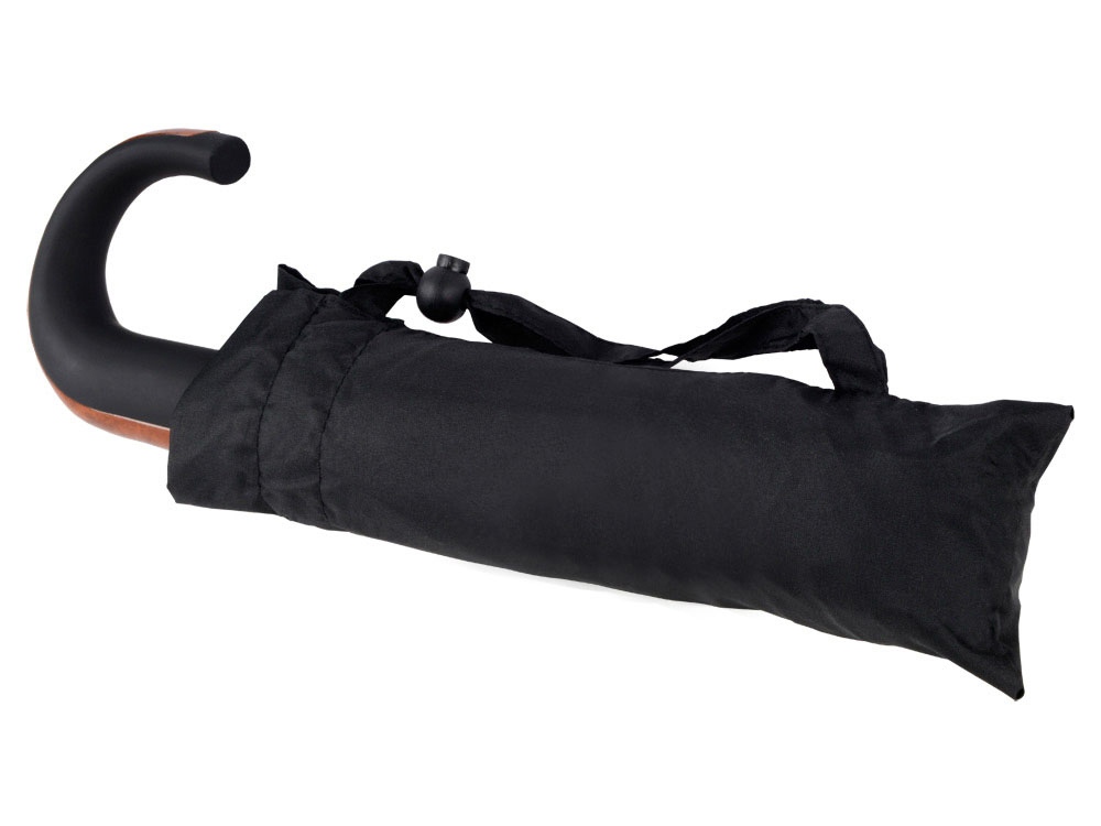 Отличный складной зонт для мужчин оснащен полуавтоматическим механизмом. Удобная рукоятка не скользит в руке, позволяя надежно удерживать зонт. Ручка зонта задекорирована под дерево. На купол можно нанести любое изображение.