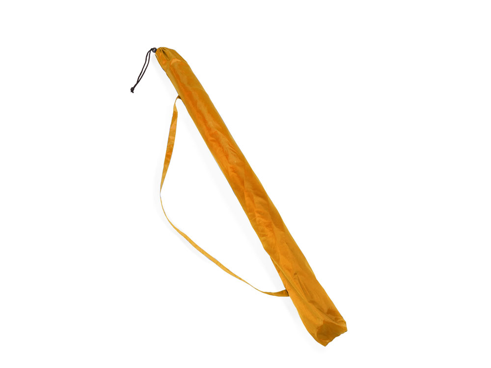 Пляжный зонт с 8 панелями из прочного нейлона с защитой от ультрафиолета. Доступен в широком ассортименте цветов. Стержень с регулируемой высотой и белыми спицами. Купол окантован двойной строчкой. В комплекте чехол для переноски с плечевым ремнем.