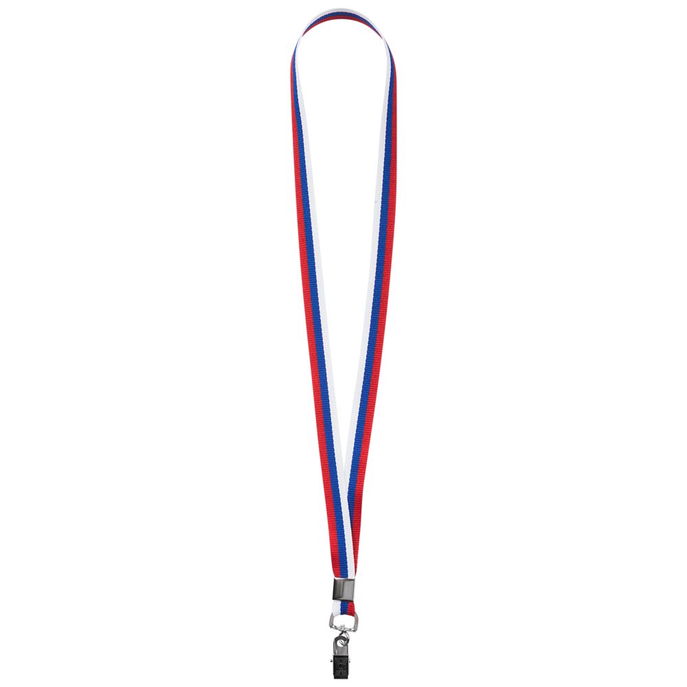 Бейдж крепится к ленте с помощью металлической клипсы.