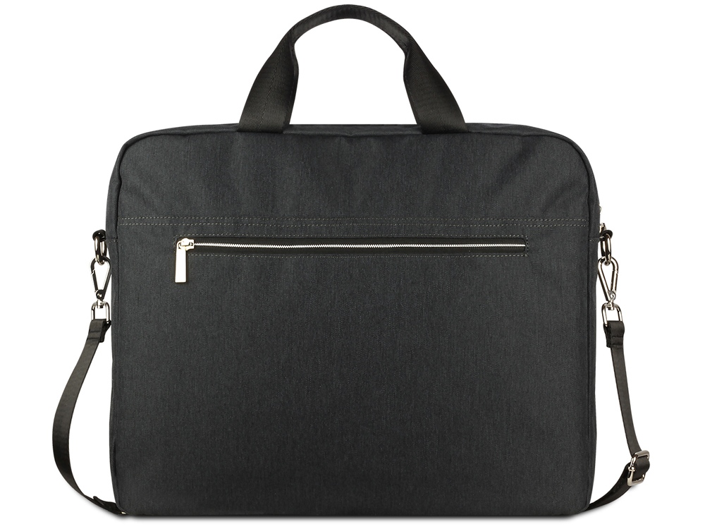 Внешняя организация: переднее отделение на молнии с карманом-органайзером (открытый карман, 3 слота для карточек, 2 держателя для пишущих принадлежностей), передний карман на молнии, задний карман на молнии с ремнём для соединения с телескопической ручкой чемодана, ручки высотой 9 см, съёмный регулируемый плечевой ремень (до 150 см)