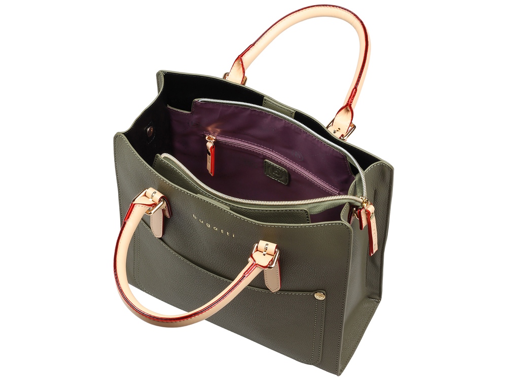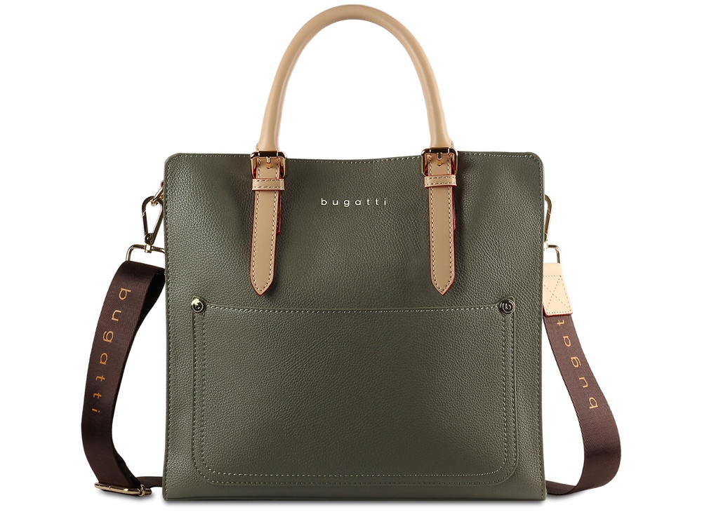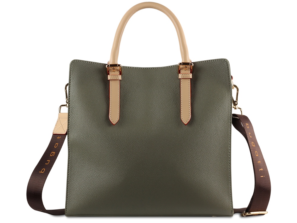 Сумка-портфель женская BUGATTI Ella, оливковая, полиуретан, 30х11,5х28 см