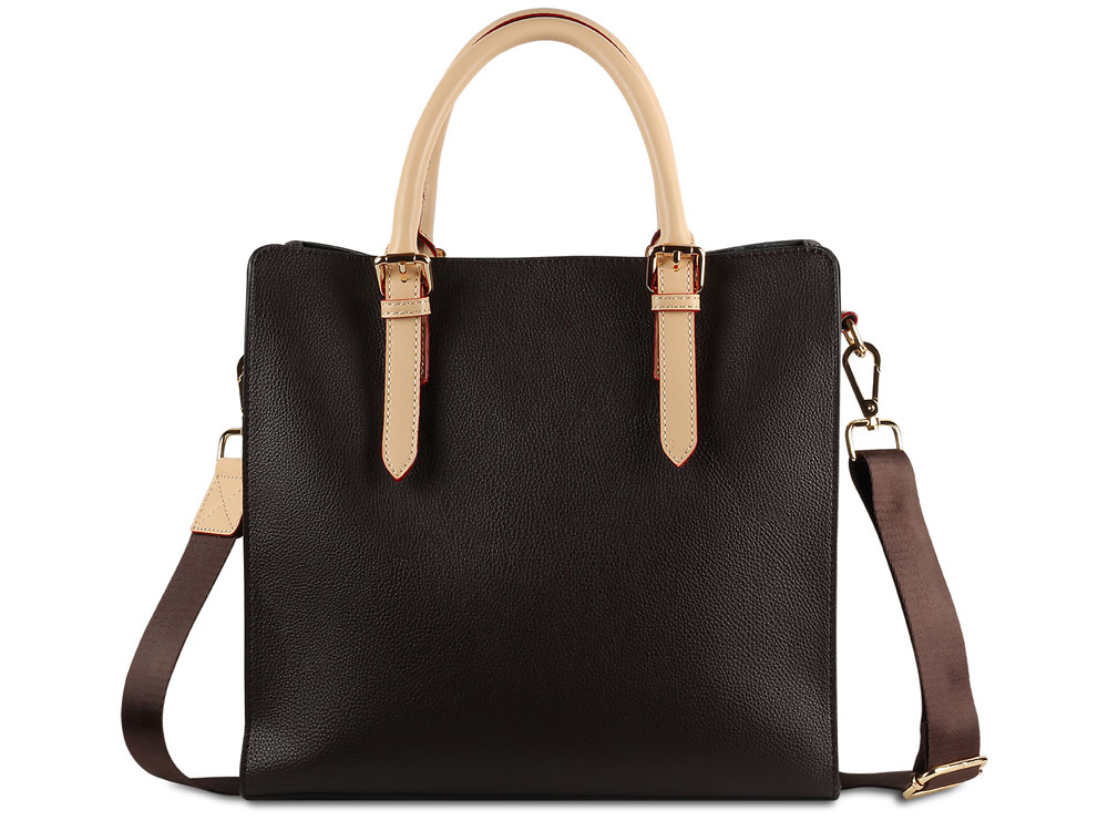 Сумка-портфель женская BUGATTI Ella, тёмно-коричневая, полиуретан, 30х11,5х28 см