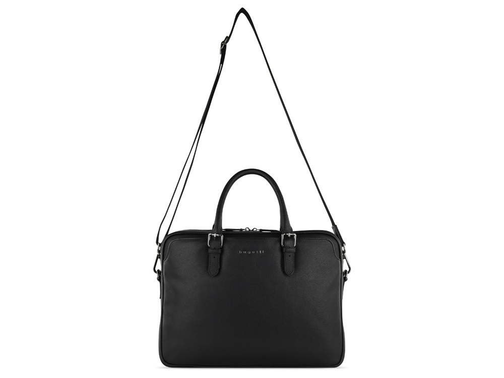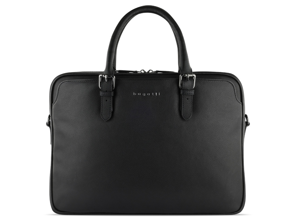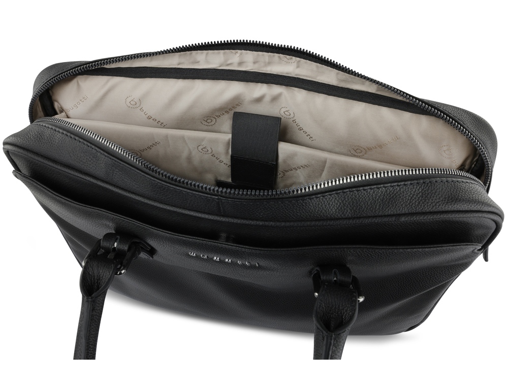 Портфель женский BUGATTI Bella, чёрный, воловья кожа/полиэстер, 38х6,5х27 см