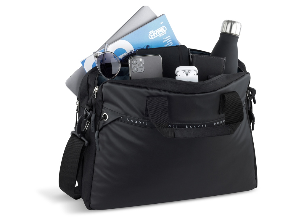 Портфель мужской BUGATTI Blanc Delight, чёрный, нейлон RPET600D/тарпаулин/полиэстер, 40х10х29 см