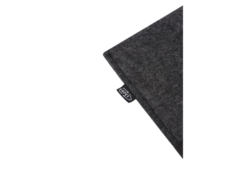 Чехол для ноутбука выполнен из фетра толщиной 3 мм. С передней стороны расположен органайзер размером 13x27 см для канцелярских принадлежностей, карт и телефона. Чехол фиксируется в закрытом виде с помощью эластичной ленты.