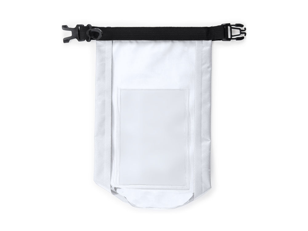 Водонепроницаемая сумка из прочного рипстопа. Практичное окошко с карманом для мобильного телефона. Водонепроницаемая система закрытия с защелкой и карабином для транспортировки. Общий объем: 3 л. Полезный объем: 2,5 л.
