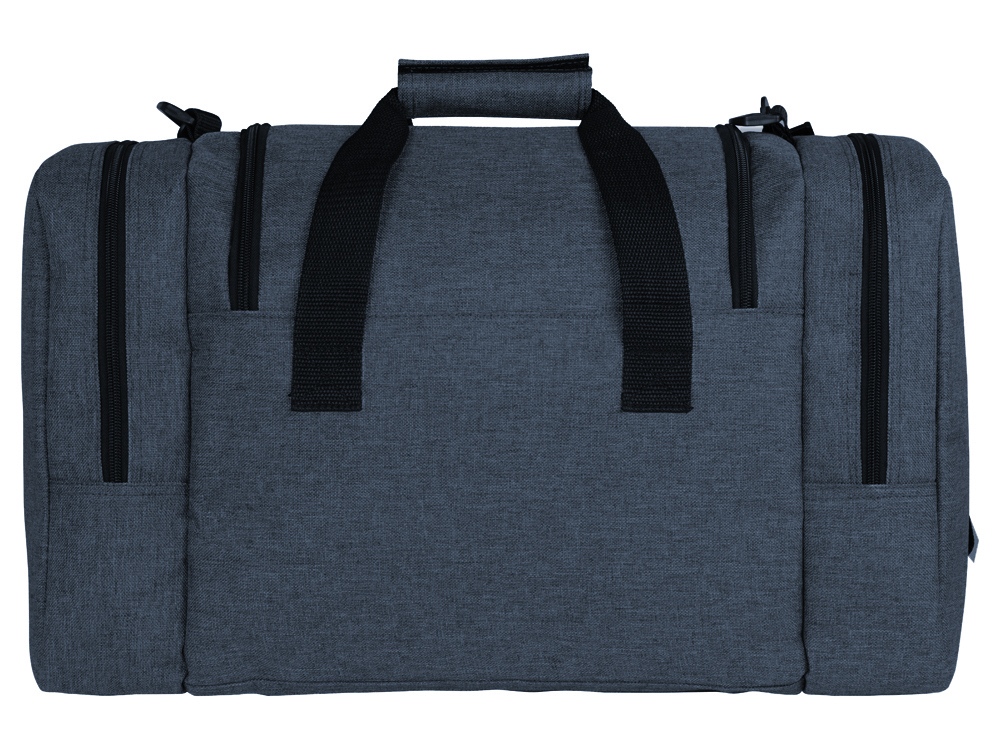Удобная и прочная сумка для путешествий или походов в спортзал. Два вместительных больших кармана на молниях по бокам и один спереди. Сумка сделана из плотной долговечной ткани. Ремень на плечо отстегивается и регулируется по длине.