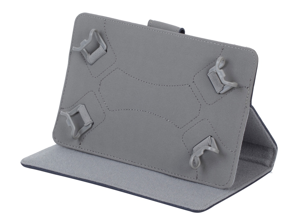 • С помощью двух скрытых липучек планшет можно фиксировать под разными углами в режиме просмотра. В закрытом состоянии фиксируется магнитной застежкой. В открытом - застежка крепится к обратной стороне, не мешая работе с планшетом.