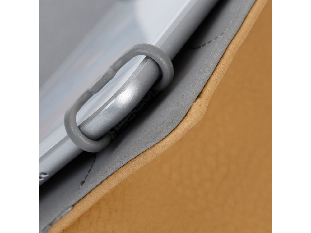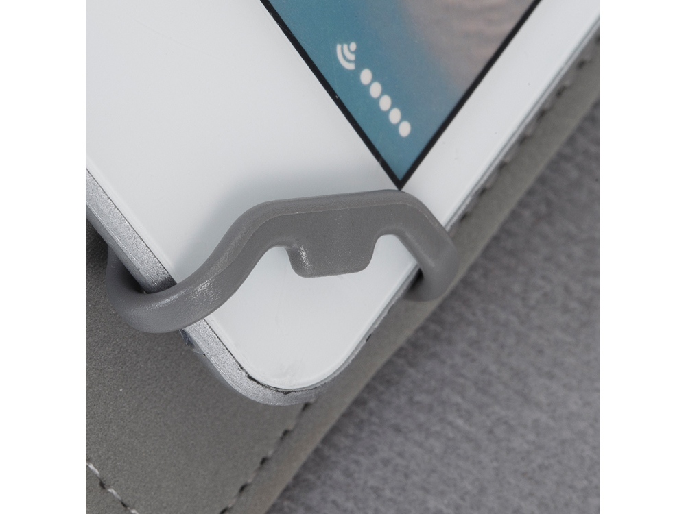• С помощью двух скрытых липучек планшет можно фиксировать под разными углами в режиме просмотра. В закрытом состоянии фиксируется магнитной застежкой. В открытом - застежка крепится к обратной стороне, не мешая работе с планшетом.