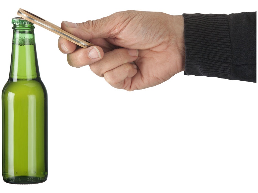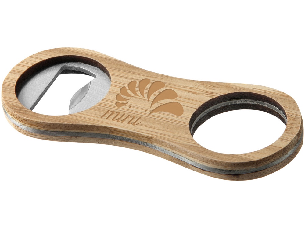 Бамбуковая открывалка для бутылок Barron. Открывалка для бутылок, изготовленная из прочного бамбукового материала с логотипом по середине. Бамбук и нержавеющая сталь.