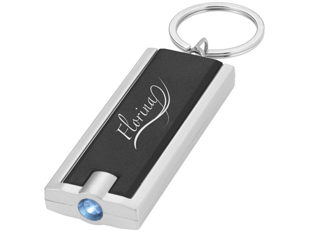Брелок-фонарик Castor. Брелок с ярким светодиодным фонариком с кнопкой. Металлическое кольцо для ключей. Батарейки включены в комплект. АБС-пластик.