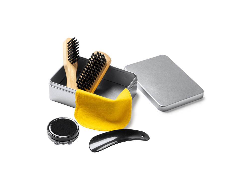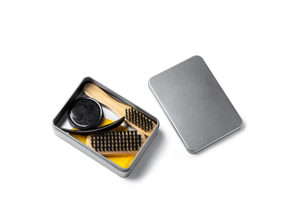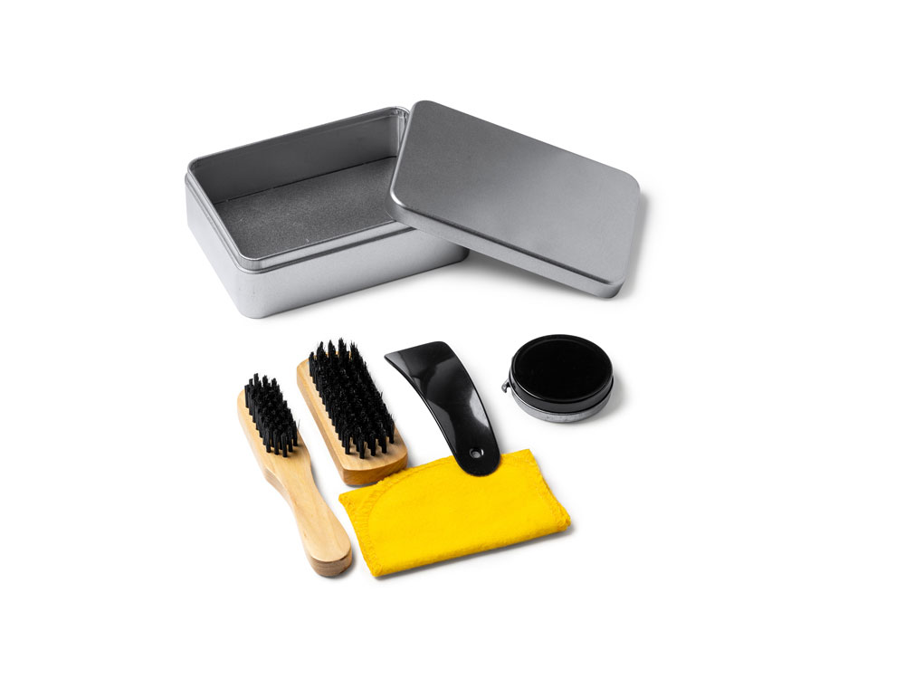 Набор для чистки обуви, состоящий из 5 предметов. В набор входит рожок для обуви, ткань, 2 вида щеток с деревянным корпусом и полироль нейтрального цвета. Держите обувь в чистоте где угодно, идеально подходит для поездок.