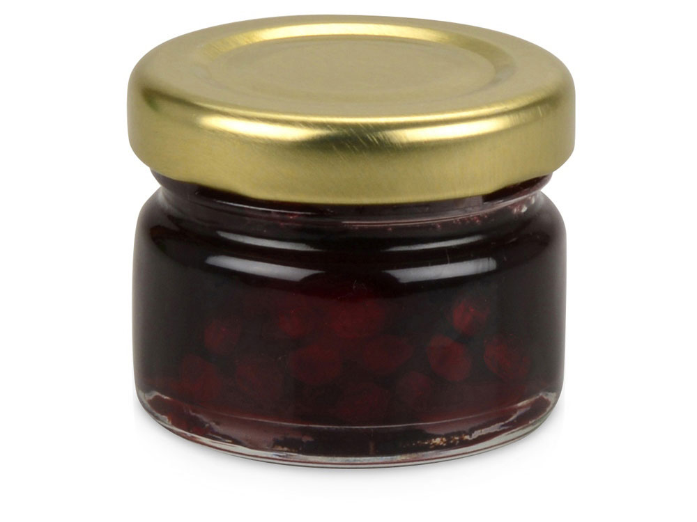 Комплектность: подарочная упаковка Домик 7 х 7 х 8,6 см, вишневое варенье 25 мл, d4,4 х 3,5 см