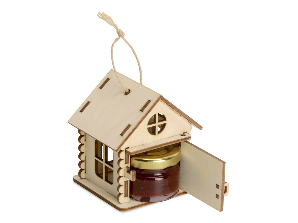 В домике открывается дверца, и в него можно поместить небольшую баночку с медом или вареньем. Оригинальная конструкция сувенира украсит любой интерьер, как в офисе, так и в квартире. Подарочная упаковка Домик позволит вам сделать оригинальный и запоминающийся подарок для руководителя или коллеги.