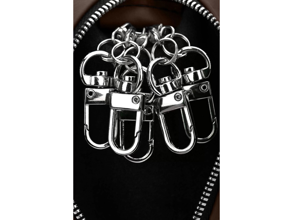 Простая, но в тоже время стильная ключница. Небольшие кольца для ключей, делают эту ключницу максимально легкой. 5 колец для ключей. Металлическая молния придает строгости внешнему виду!