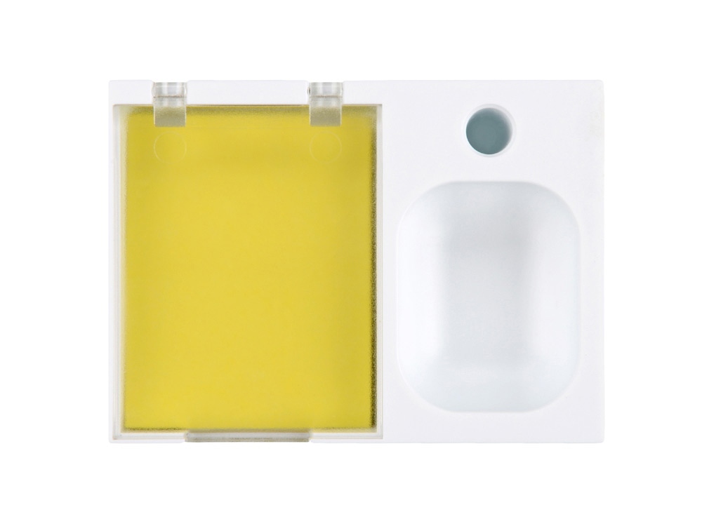 Яркая и удобная поставка под ручку, канцелярские скрепки и бумажный блок (4 х 5 см) превосходно организует ваше рабочее место. Отличный подарок при проведении промо-акций.