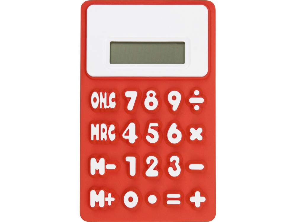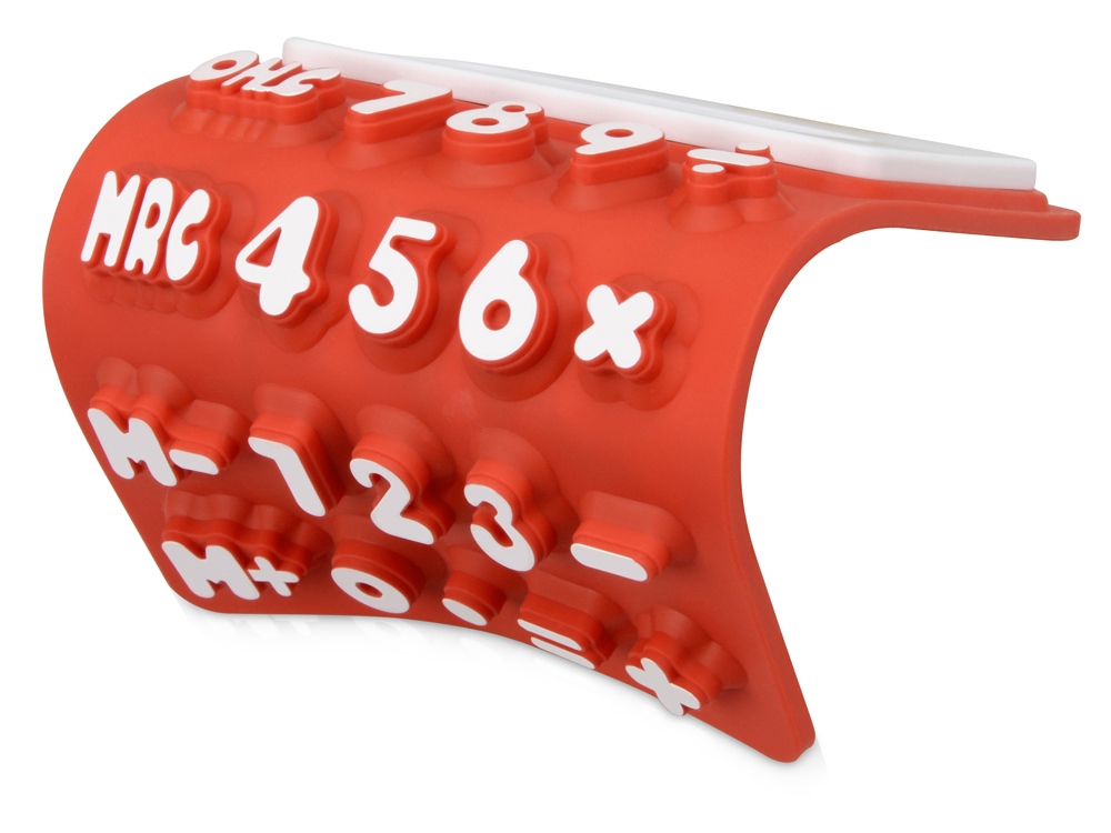 Гибкий калькулятор Splitz. Гибкий 8-разрядный калькулятор с белой отделкой, рельефными клавишами и функцией памяти. Батарейка включена в комплект. Силикон.