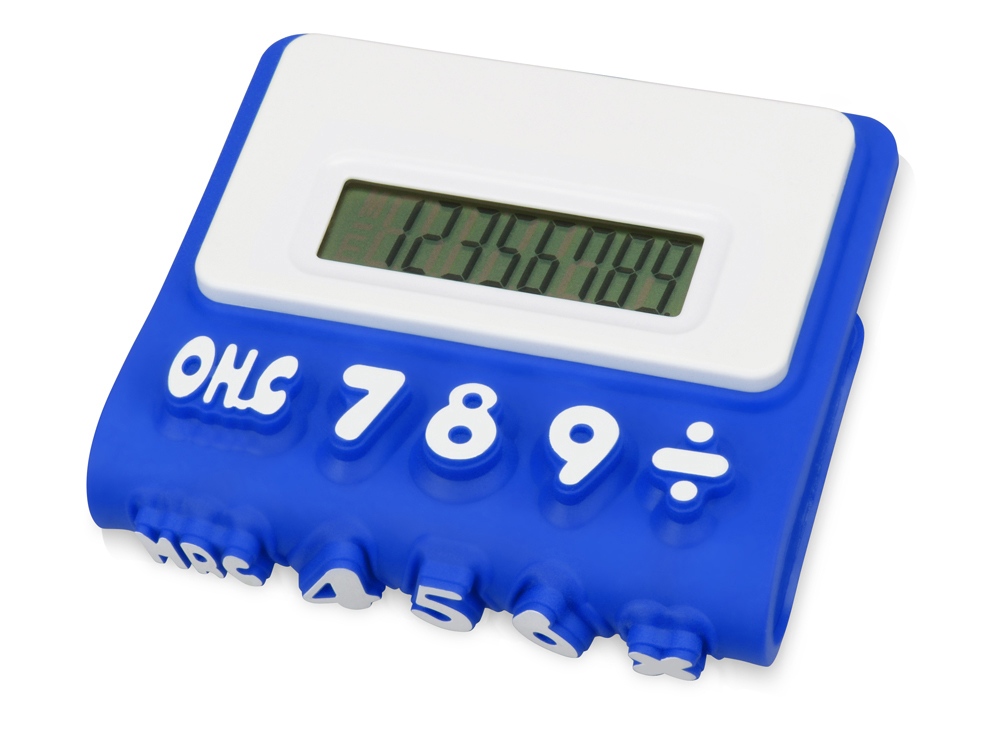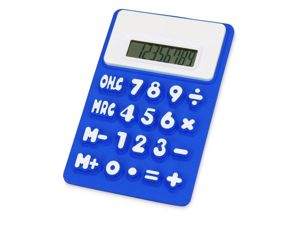 Гибкий калькулятор Splitz. Гибкий 8-разрядный калькулятор с белой отделкой, рельефными клавишами и функцией памяти. Батарейка включена в комплект. Силикон.