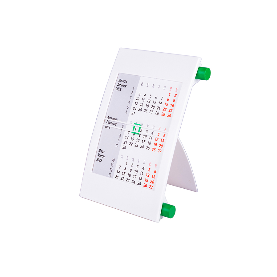 Календарь настольный на 2 года; белый с зеленым; 18х11 см; пластик; тампопечать, шелкография