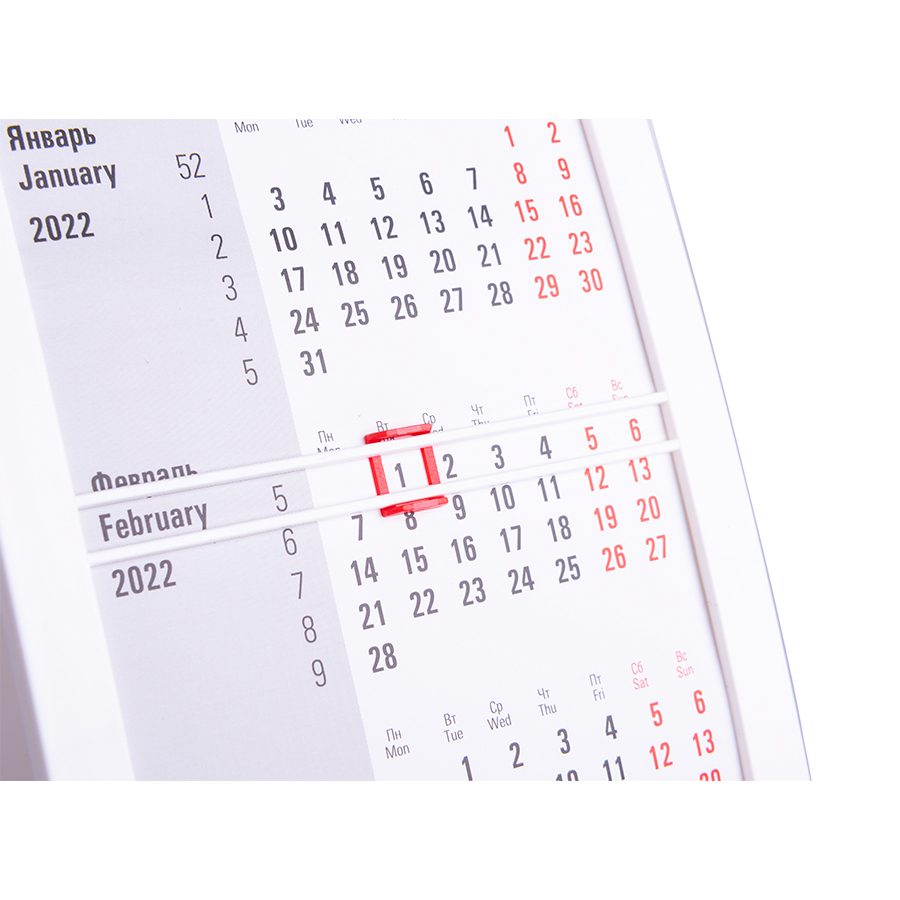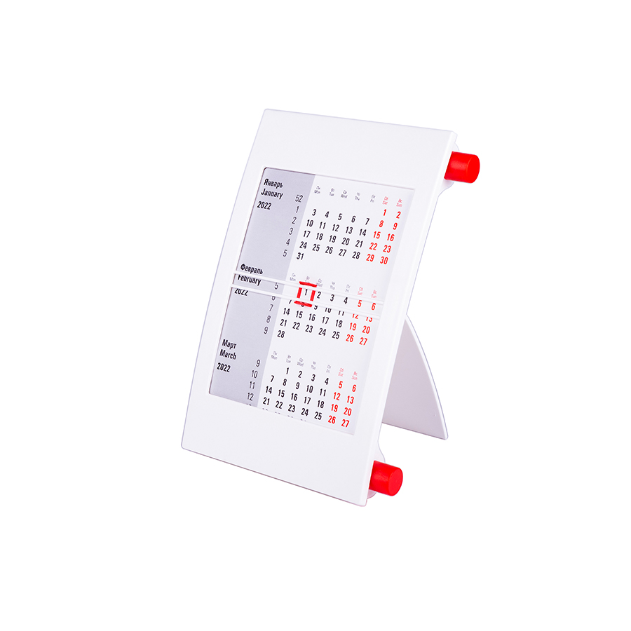 Календарь настольный на 2 года; белый с красным; 18х11 см; пластик; тампопечать, шелкография