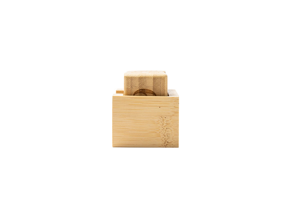 Вечный настольный календарь из бамбука, состоящий из одной подставки и четырех блоков с гравировкой.