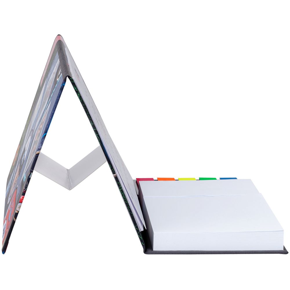 - Блок с клеевым слоем 10х7,5 см, 100 листов; блок с клеевым слоем 5х7,5 см, 100 листов; пластиковые закладки 1,2х4,3 см, 5х25 листов.