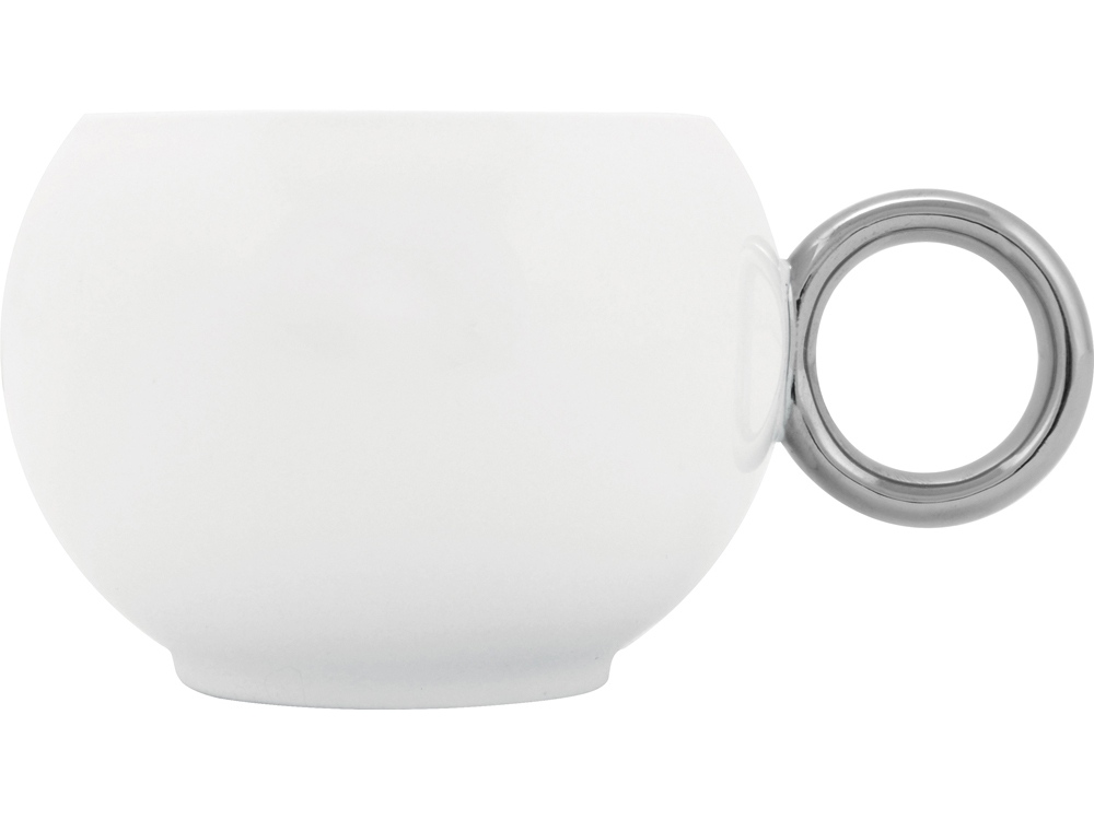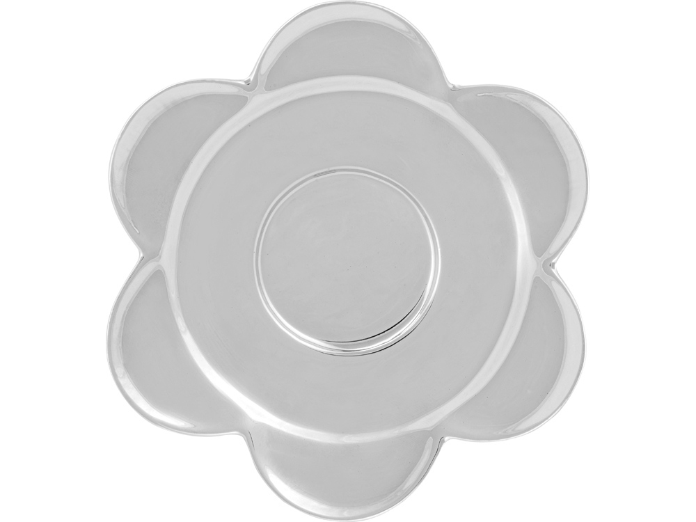 Необычной формы фарфоровая чашка на 220 мл и чайное блюдце в виде цветочка образуют оригинальную чайную пару, из которой очень приятно пить кофе или чай. Нежная бело-серебристая цветовая гамма позволяет нанести достаточно яркую персонализацию и превратить чайную пару в часть корпоративной атрибутики.