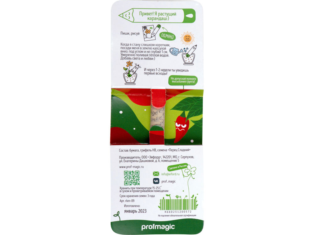 Принцип работы такой же, как и у больших карандашей: пишите карандашом до тех пор, пока не останется 1 см до капсулы. Когда он станет коротким, посадите его под углом, погрузив капсулу в землю не более, чем на 1 см. Поливайте и ухаживайте за ним, и уже через 15-25 дней паприка даст первые всходы.