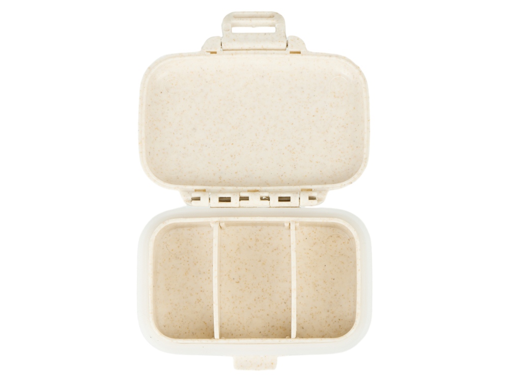 Таблетница с 3 отделениями для самых важных БАДов и таблеток, которые нужно принимать в течение дня, из переработанного пшеничного волокна.