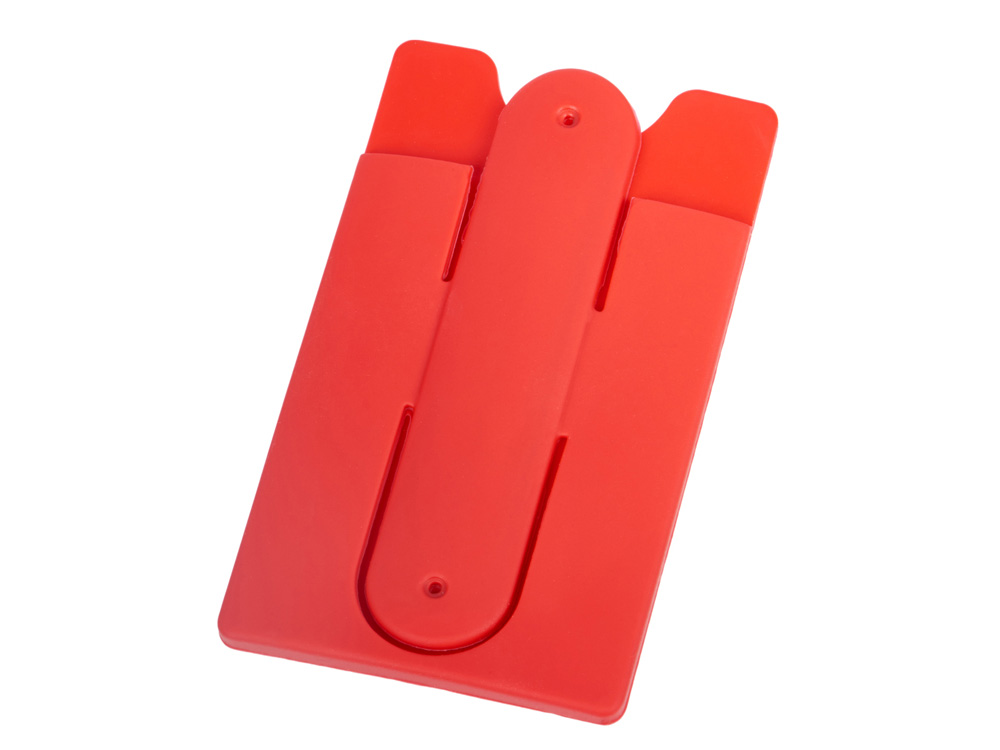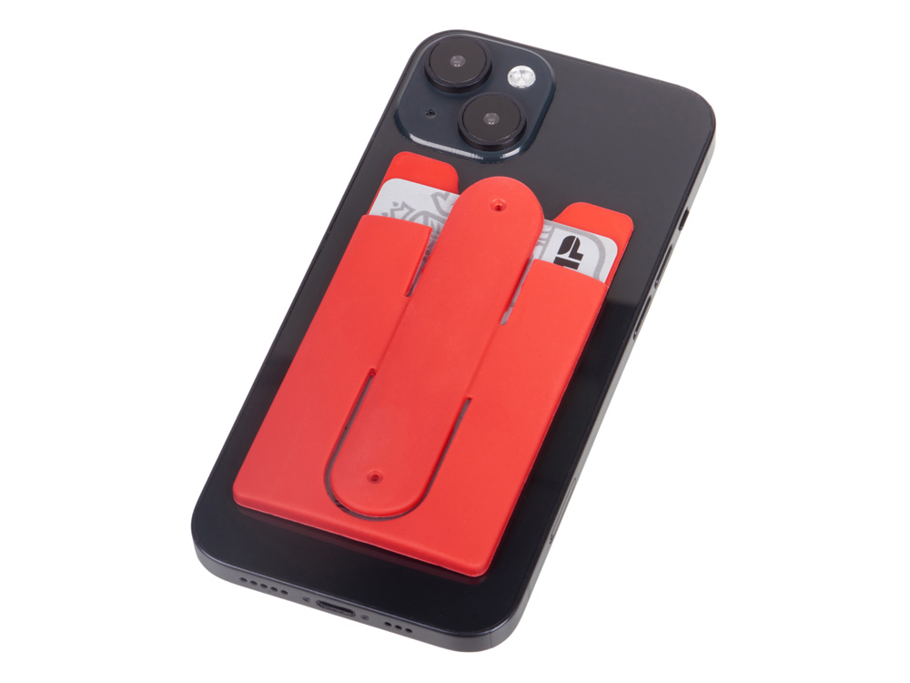 Чехол для визиток и кредитных карт с функцией подставки. За счет клейкой основы прикрепляется к обратной стороне телефона или любой другой плоской поверхности.