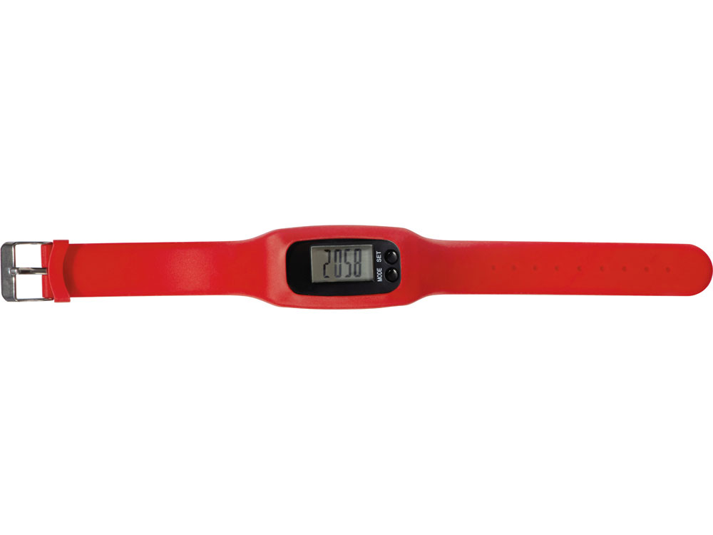 Наручные часы с возможностью отображения времени, калорий, шагов и дистанции. Есть переключение между метрической и британской системами измерений. На силиконовом ремешке можно сделать гравировку. Часы упакованы в пластиковую коробку, которую можно использовать для нанесения. Батарейка в комплекте.