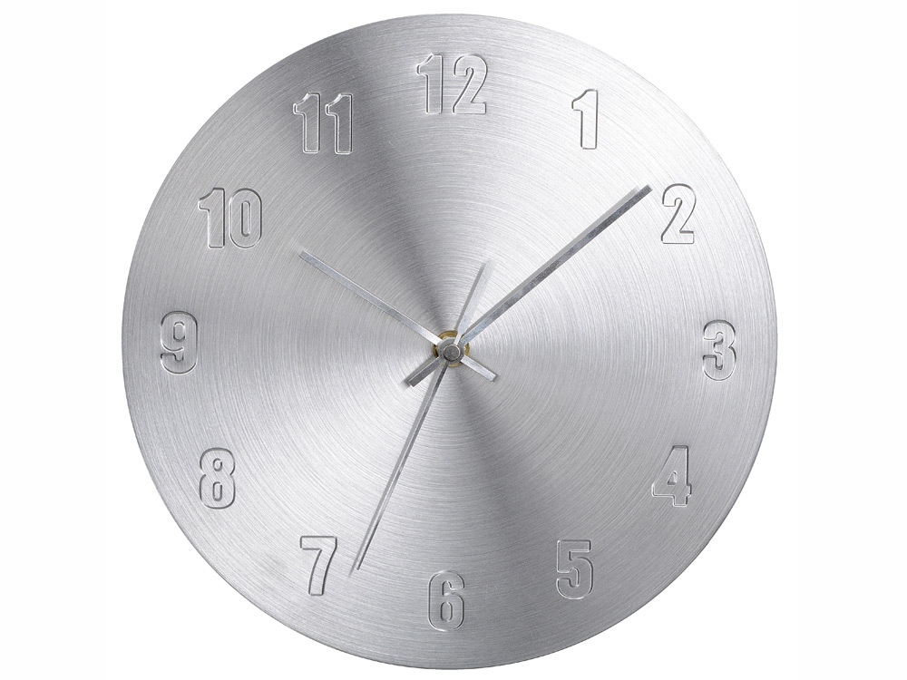 Стильные настенные часы из серебристого металла украсят интерьер помещения и придадут ему особую неповторимость. Часы станут превосходным и полезным подарком для коллег.