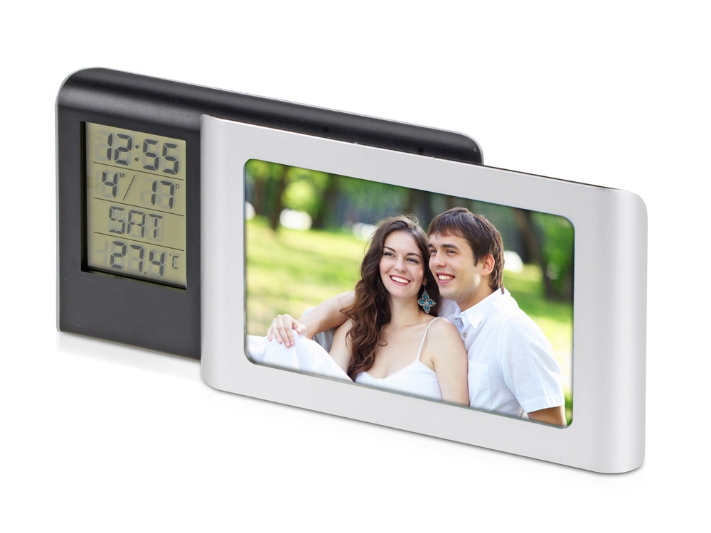 Часы-слайдер – необычный девайс на вашем рабочем столе. В часах есть функция будильника, термометр, отображается текущая дата, и присутствует рамка для фотографии. Легким движением руки цифровой дисплей можно задвинуть за фоторамку!