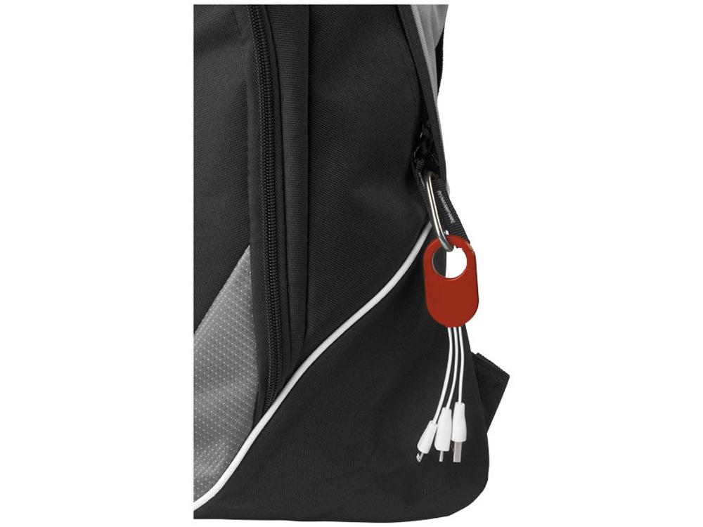 Кабель для зарядки 3-в-1. Кабель для зарядки Troop 3-в-1 с коннектором USB Type C и двойным совместимым коннектором 2-в-1 для устройств Apple® iOS и Android. Кабель оснащен карабином для удобного крепления к сумке. АБС-пластик.