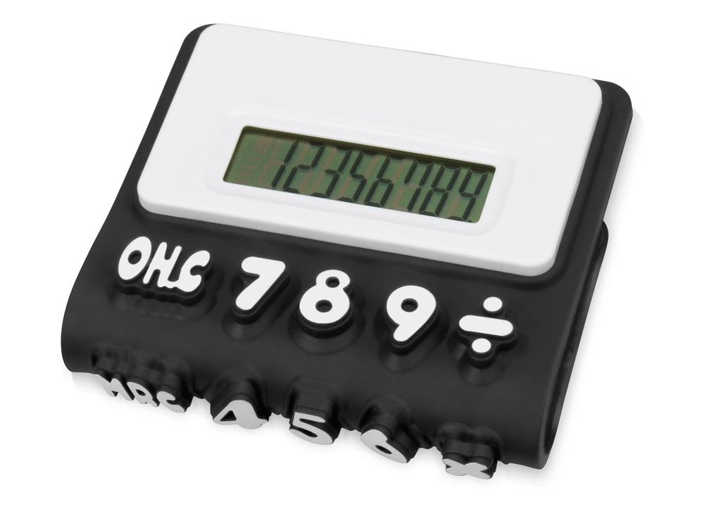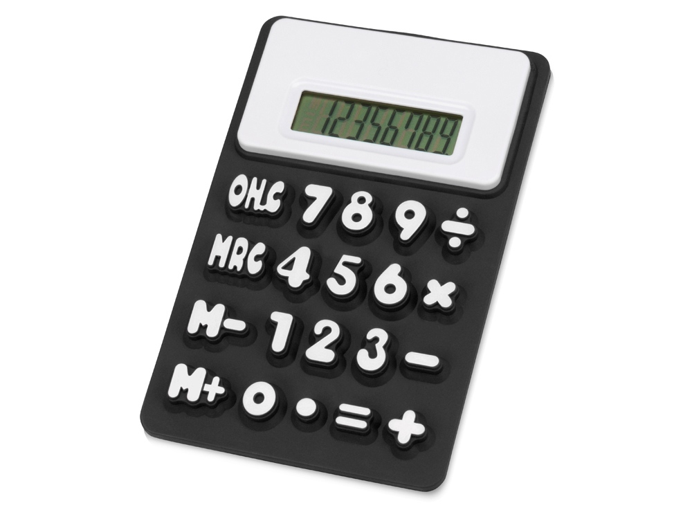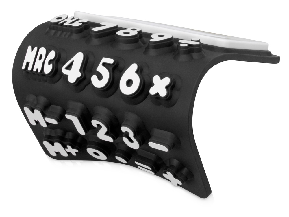 Гибкий калькулятор Splitz. Гибкий 8-разрядный калькулятор с белой отделкой, рельефными клавишами и функцией памяти. Батарейка включена в комплект. Силикон.