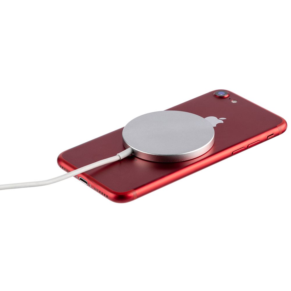 Адаптер представляет собой тонкую пластиковую пластину с 36 высокоэффективными магнитами по окружности и неагрессивным клеевым слоем и надежно удерживает устройства на задней стенке смартфона во время заряда.