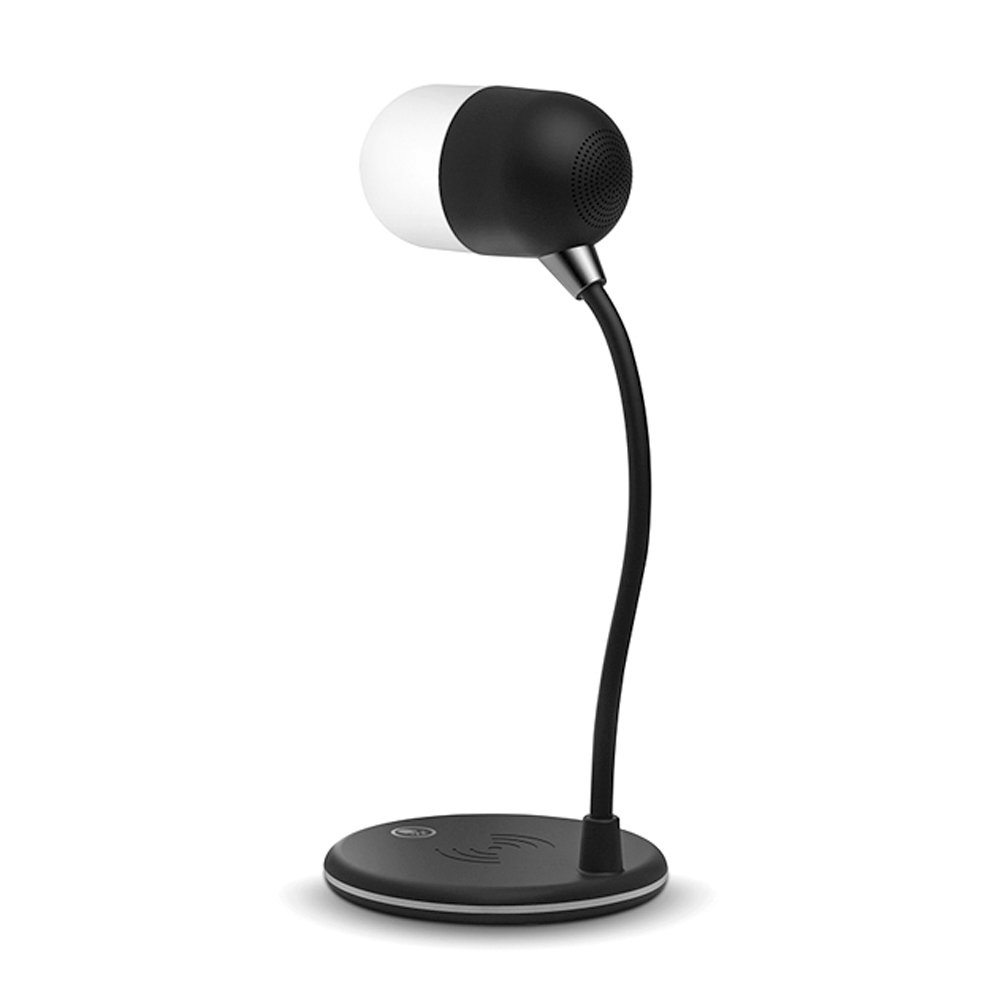 Лампа с колонкой и беспроводной зарядкой Alladin, черная